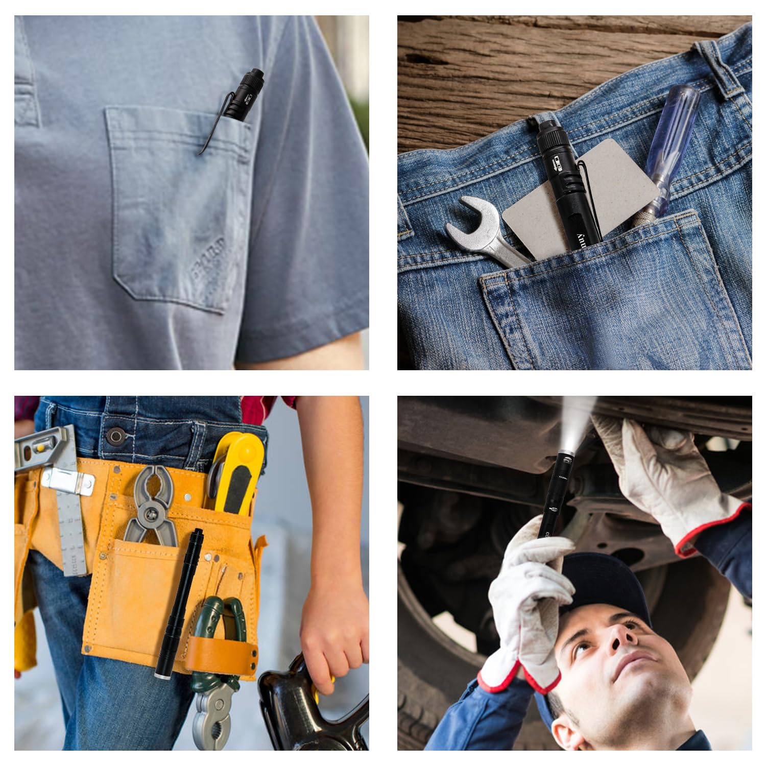 Rechargeable Pen Light Flashlight IP67 Waterproof with Pocket Clip 4-Zoomable, Prefect Pocket Flashlight for Inspection,Work,Repair