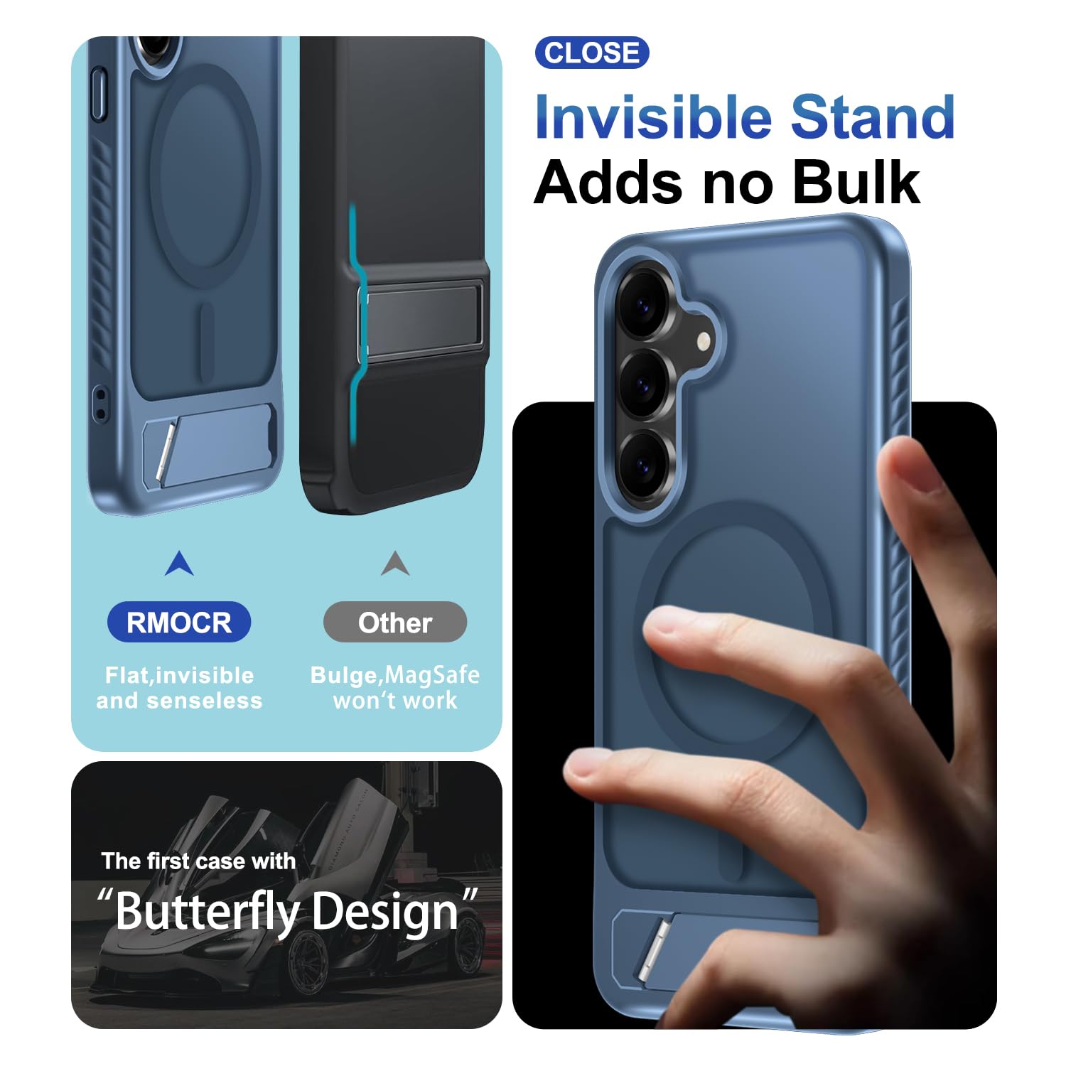 Innovate Hidden Stand:Built-in adjustable kickstand that can be seamlessly folded to the back without adding any extra bulk,easily pulled out for hands-free viewing in portrait or landscape mode.Also,the holder support multi-angle hovering and standing,and can be folded repeatedly for use
