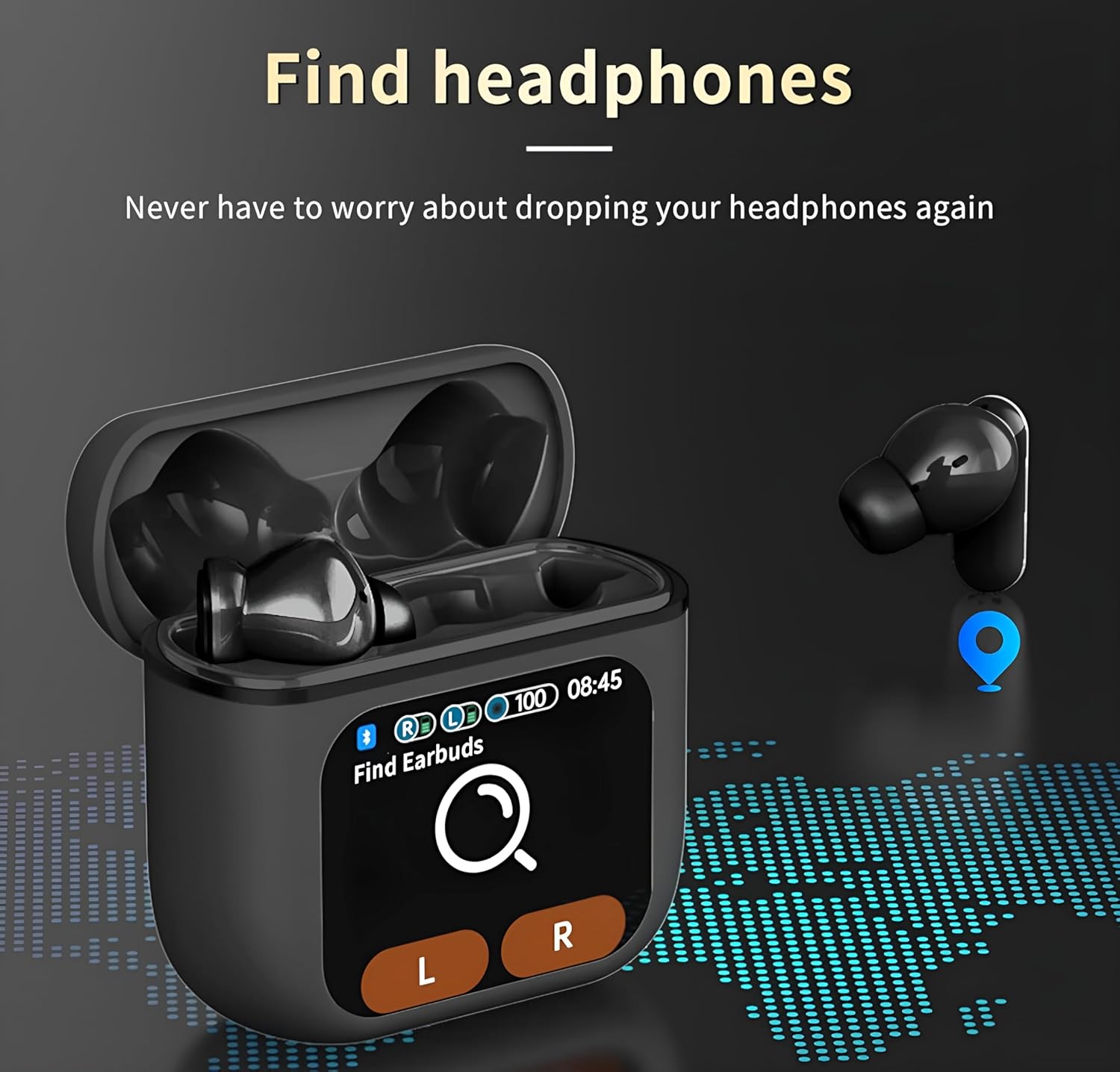 {Smart Case for seamless experience}: Control the earbuds’ settings, manage playback, control your audio setting and battery level and set your alarm without taking out your phone, through the screen of the charging case. Enjoy a truly seamless experience thanks to the VEHOP SE-60 unique smart charging case without using your phone.
