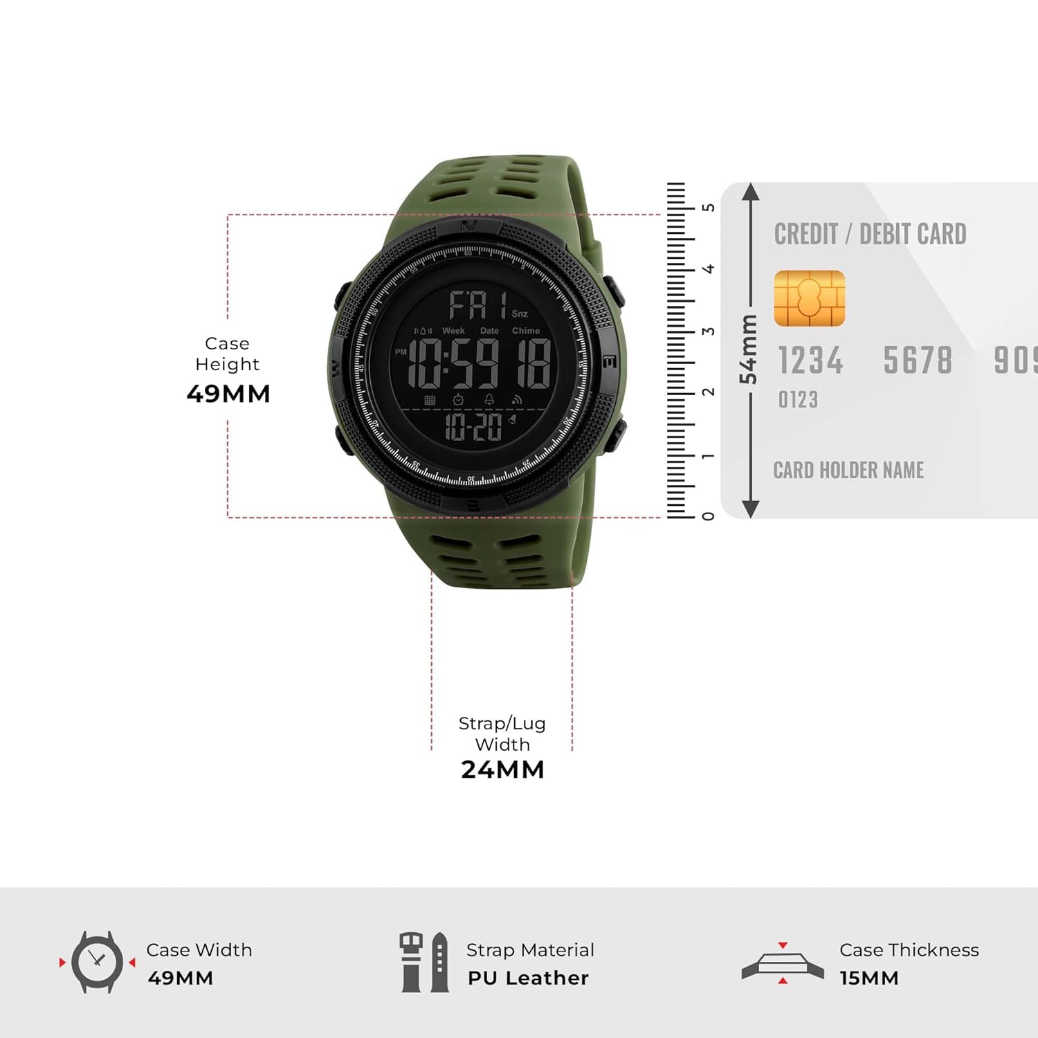 SKMEI Men’s Digital Sports Watch 50m Waterproof LED Military Multifunction Smart Watch Stopwatch Countdown Auto Date Alarm – 1251