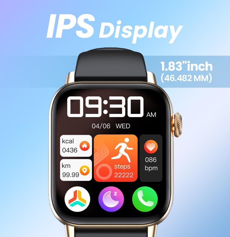 Brilliant 1.83″ HD Display & Sleek Design: Enjoy crystal-clear visuals with a large 1.83-inch HD display, offering smooth touch control, vibrant colors, and a stylish design paired with a comfortable silicone strap.