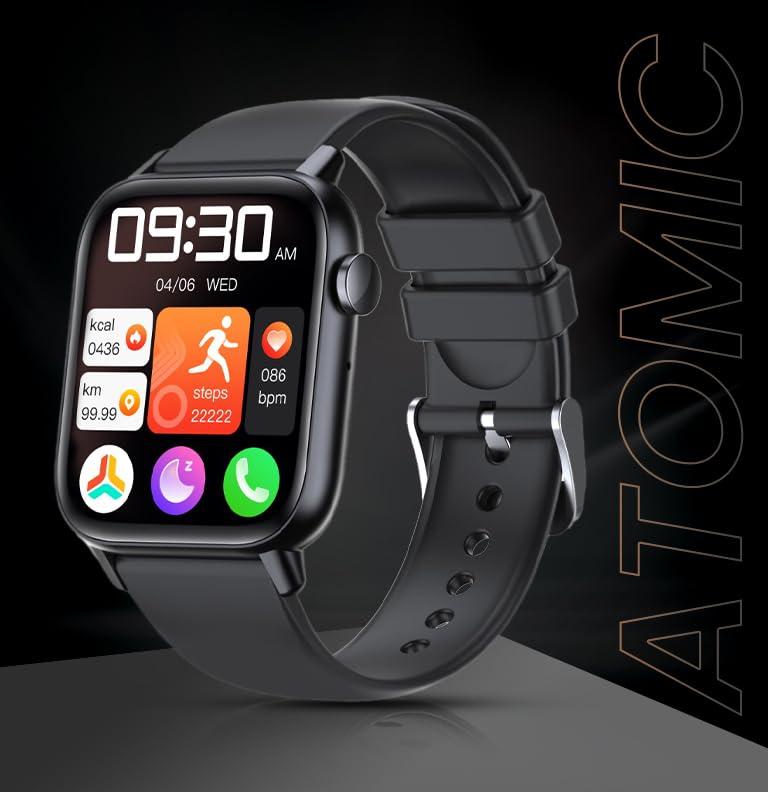 Smart Watch Atomic – 1.83″ Large HD Display, Menstrual Cycle Reminder, Heart Rate Monitor, SpO2, Sleep Tracker, IP67 Waterproof, Bluetooth Notifications, Fitness & Activity Tracker (Black)