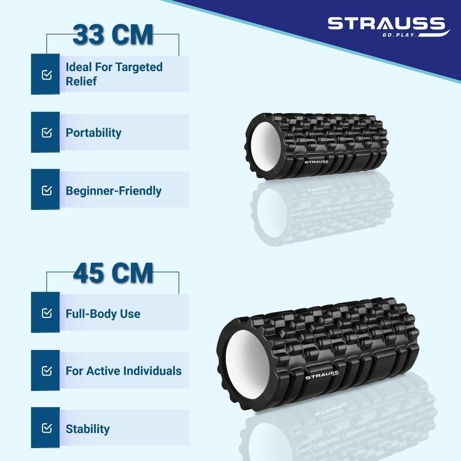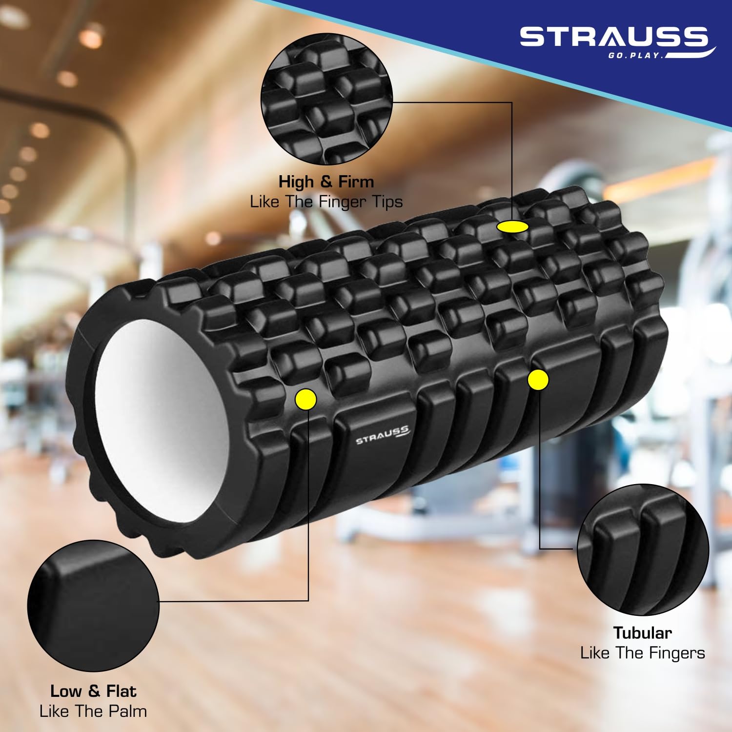 Strauss Deep Tissue Massage Foam Roller|High-Density Muscle Roller for Myofascial Release, Physical Therapy, Yoga, Pilates|Exercise Equipment for Deep Tissue Massage and Muscle Relief|33cm,(Black)