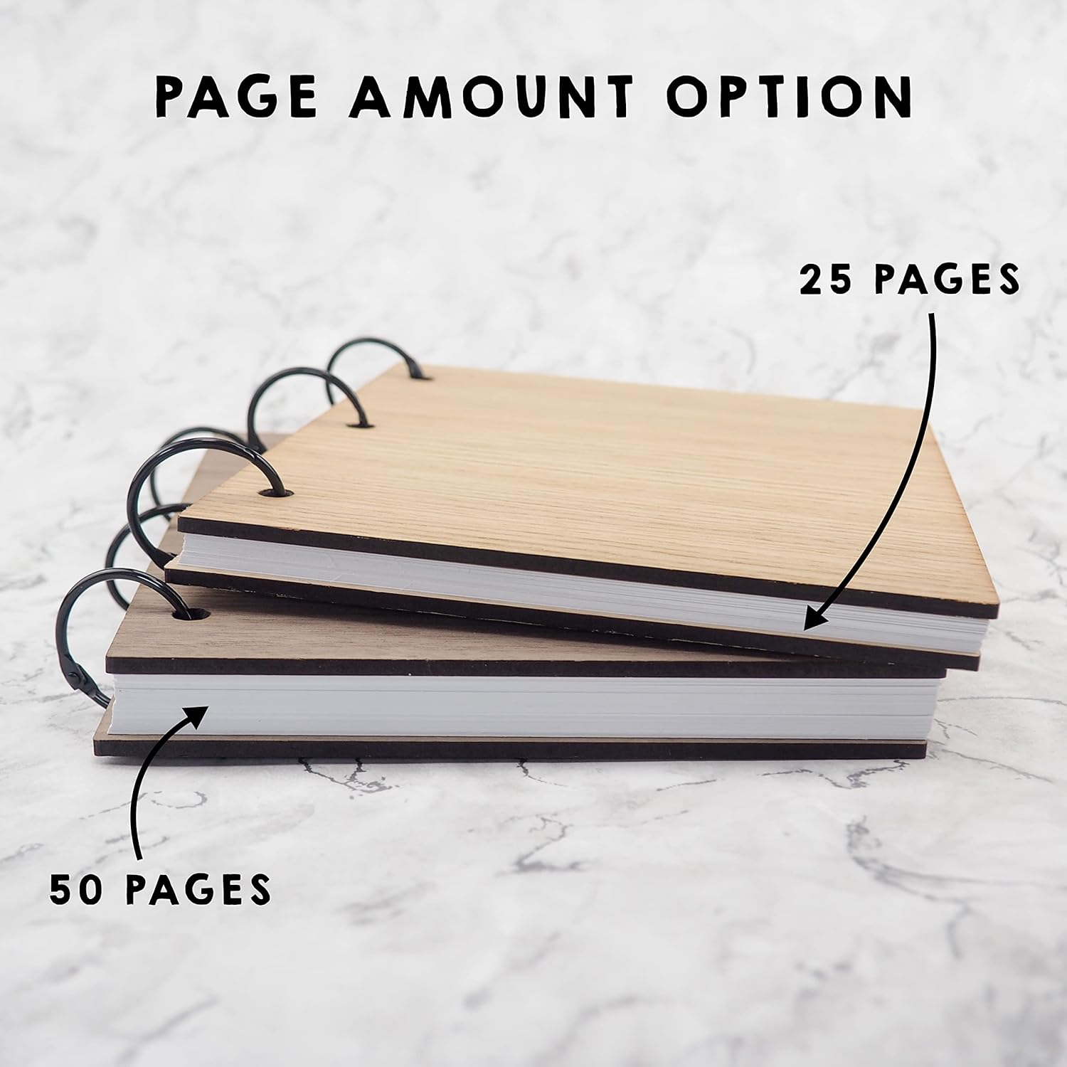 Our scrapbooks are handmade and assembled in-house with our Dust and Things logo on the back of the book. Choose from oak or walnut veneer with 25 or 50 pages of high quality 250GSM paper.
