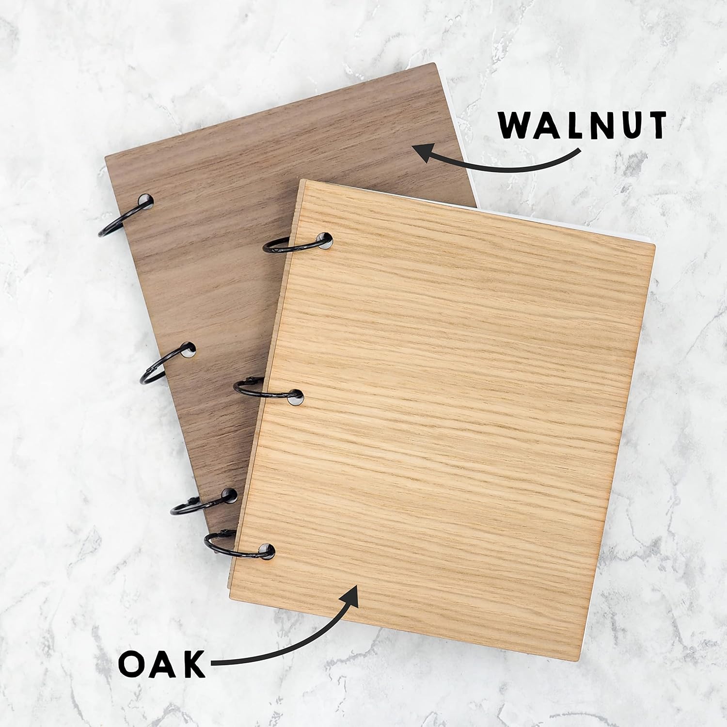 CRAFTED WITH LOVE Handmade with premium oak or walnut veneer covers, thick 250GSM pages, and strong black carbon steel ring binders — ready to hold your photos, keepsakes, doodles, and love letters.