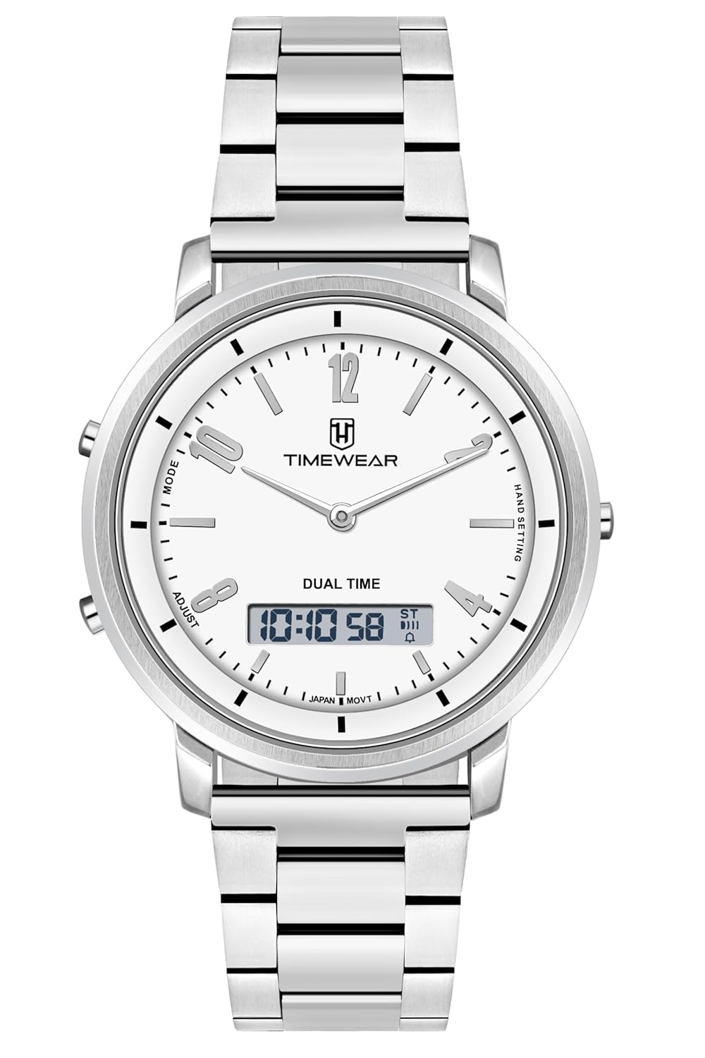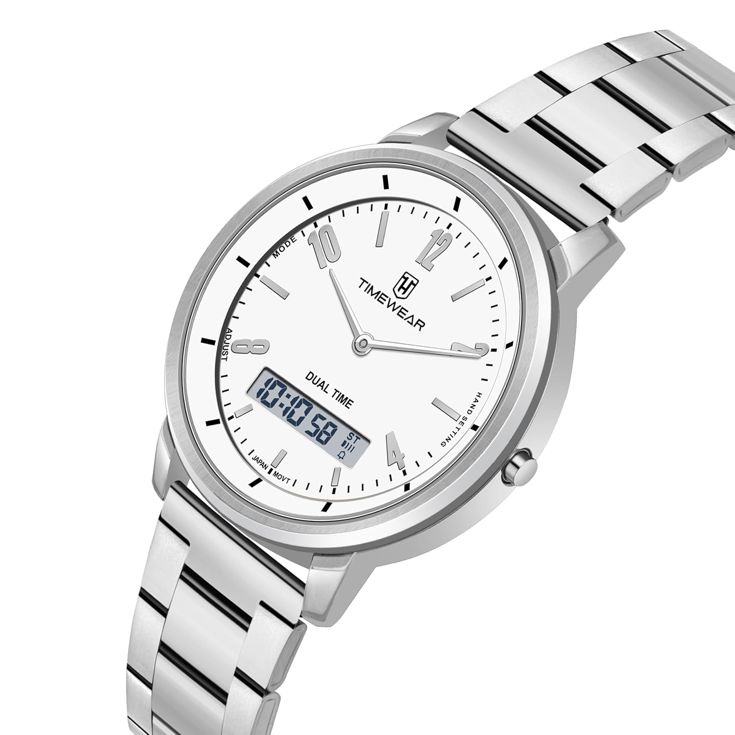 TIMEWEAR Vintage Analog Digital, Dualtime, Automatic Calendar (Day, Date, Month) Alarm, Stopwatch, Stainless Steel Chain Watch for Men