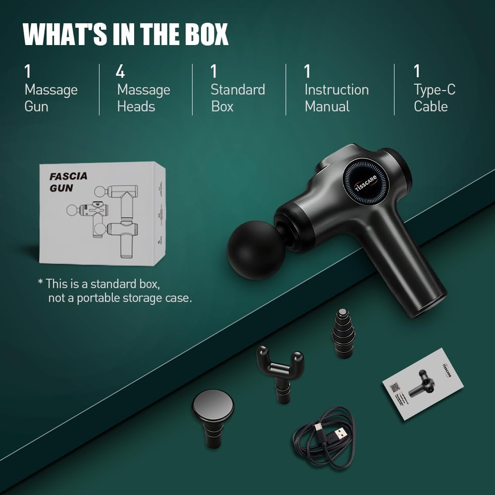 [Massage Machine for Body Pain] The Tisscare gun massager is designed to be your best massage gun choice, expertly targeting tense fascia with rapid vibrations for full body relief and muscle relaxation. It boasts wireless charging and an ergonomic design, making it lightweight and portable for use anytime, anywhere.