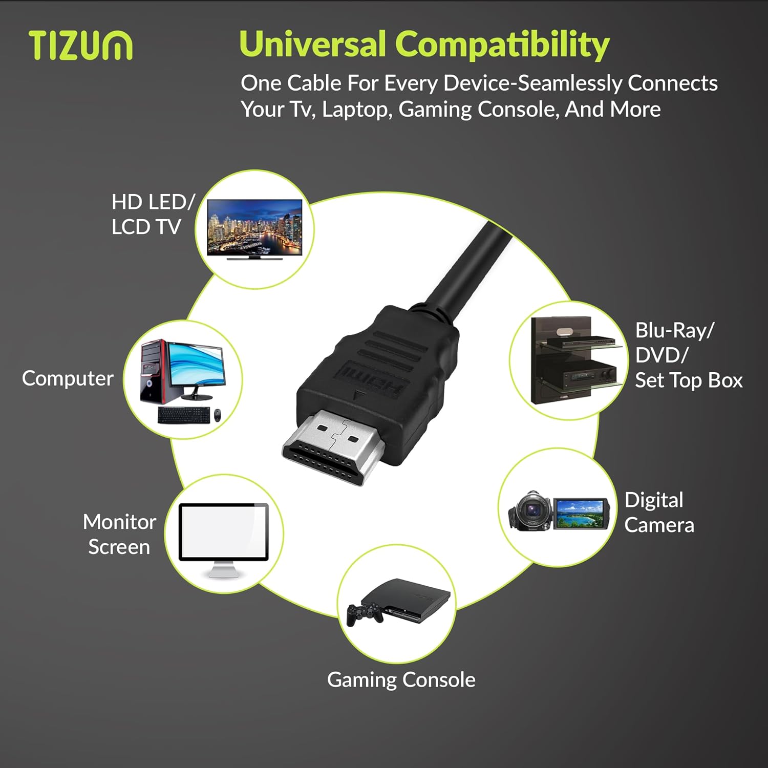 Universal HDMI Compatibility: Connects easily to PS5, Xbox, Fire TV, Apple TV, Blu-Ray, Laptops, Projectors, and Set Top Boxes for seamless video and audio transfer. Truly an all-in-one HDMI cord.