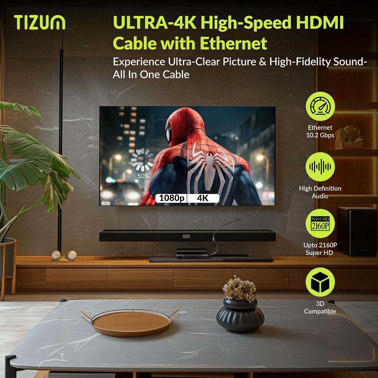 High-Speed 4K HDMI Cable: Experience crystal-clear 4K Ultra HD resolution at 24Hz with deep color and smooth performance. Perfect for streaming, movies, and gaming with no signal loss.