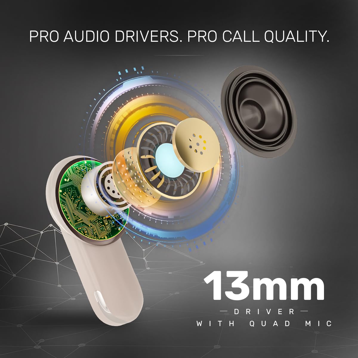 Ultra Airbuds with Smart Touch Display Buds, True Wireless Earbuds, ANC & Transparency Mode, 70H Playback Time, Find My Earphones Feature, Low Latency, Fast Charging Buds (Beige)