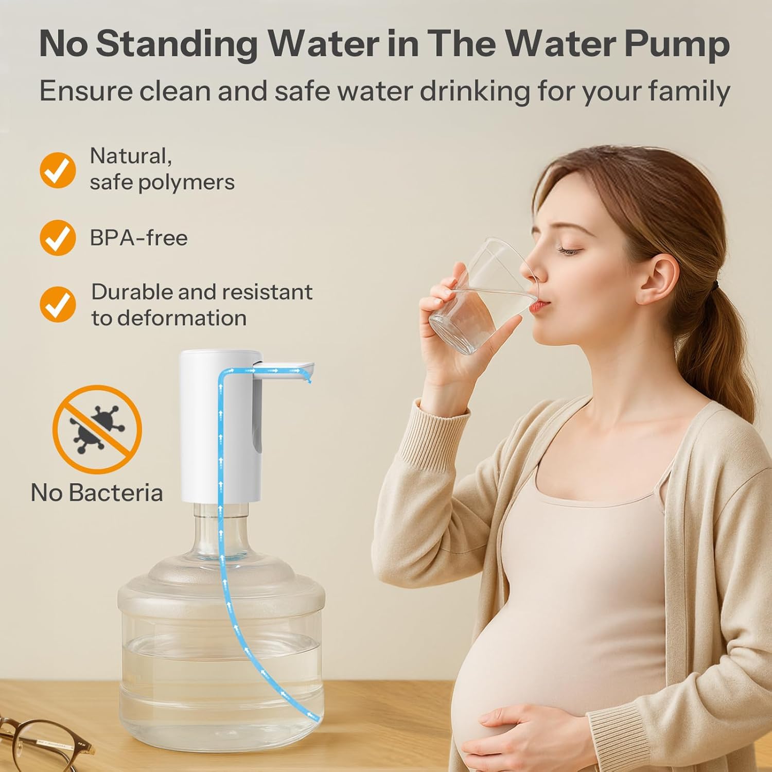 Food Grade Material: The entire water path(including PP elbow, water inlet pipe, water outlet pipe, bracket, silicone umbrella and gasket) of UN1QUE water dispenser pump is made of food-grade materials, eliminating secondary contamination and ensuring safe drinking. Mothers and babies can drink it with peace of mind.