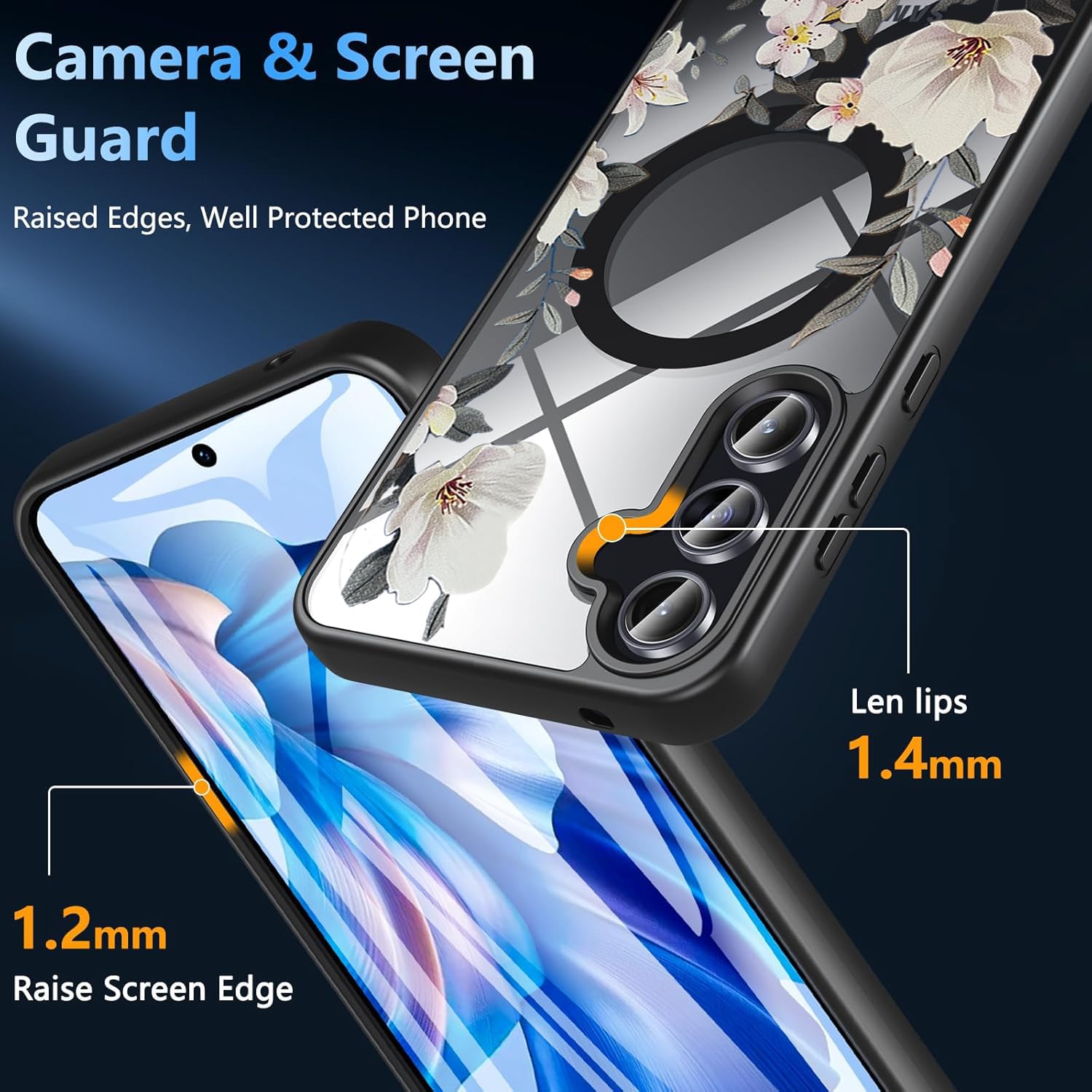 🌺【Stylish Bling Design】 The sparkling diamond-like colorful vintage Magnatic floral flower design makes your phone so pretty. The cute wavy border design makes your phone more fashionable and eye-catching.