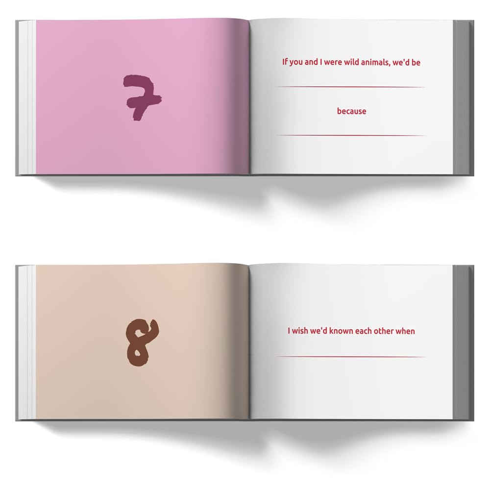 Fill-in-the-blank gift journal with 50 unique statementsThe “Blanks” let you choose how u want to express yourselfEasy to create – just fill it, wrap it and give itHigh-quality premium gift that will last for decades!Beautifully designed book with personalised layoutsFull-colour A6 (Small) size book with a hard-case coverIts something the receiver will keep & cherish forever!