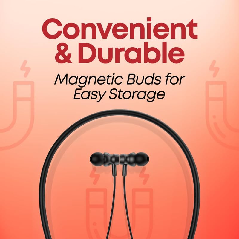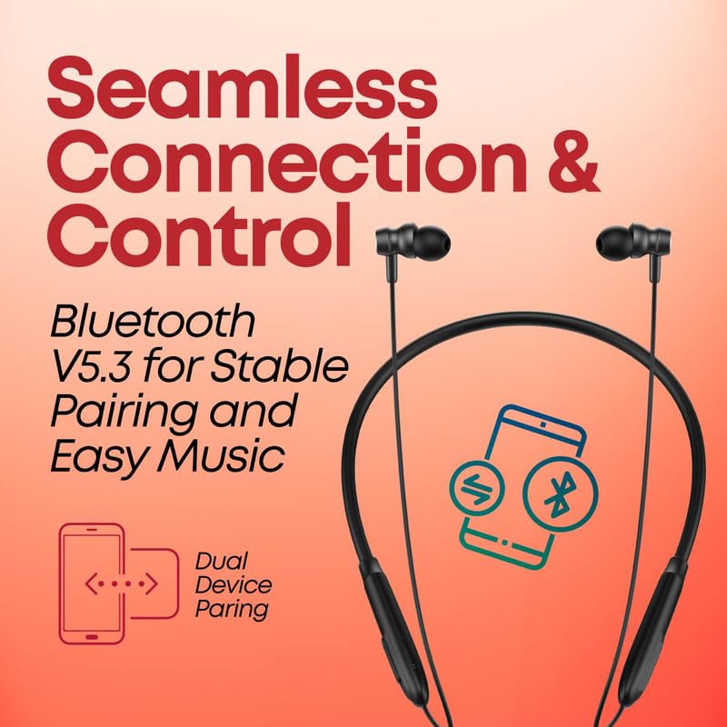 Ergonomics with a lightweight sturdy built (just 26gms) | Wireless Earphones with mic & Bluetooth 5.3 for seamless 10-meter connectivity, Quick pairing, Dual-device paring & broad compatibility.