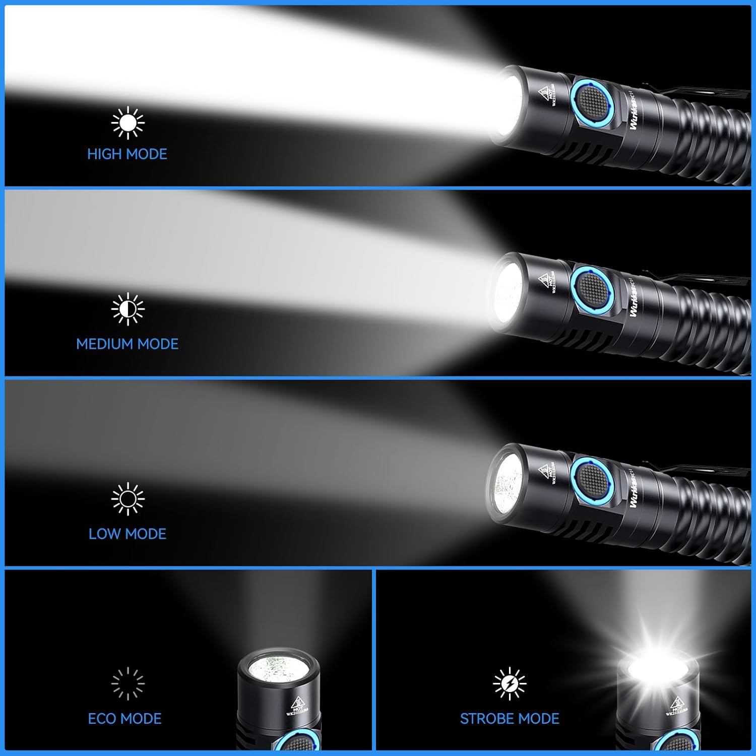 Super Bright Light: The small powerful torch uses 1* high 90 CRI LED(The Sun:100 CRI). Output up to 1200 lumens (max.), beam distance up to 155 meters(169 yards). The LED has a natural white light color with good color rendering. You can see every detail even in complete darkness.